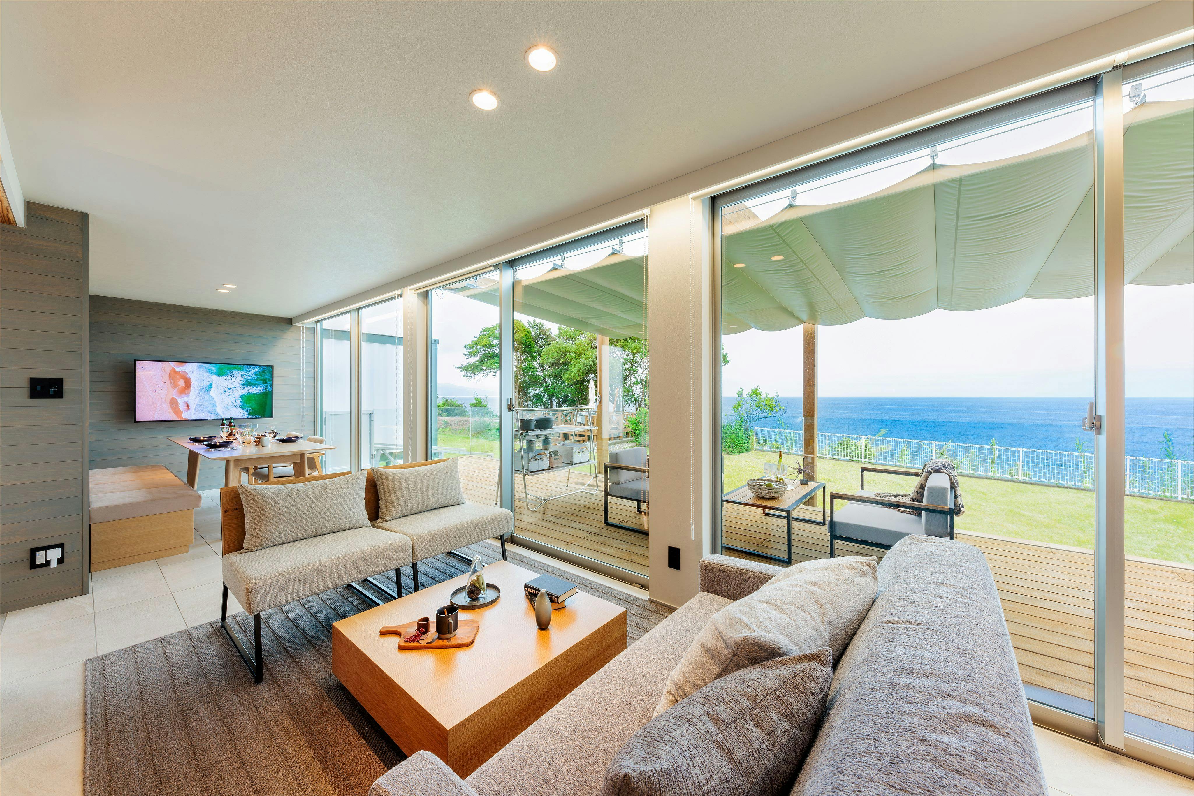 駐車場:無料 ●客室IT:全室無料 ●コンテナハウス●太平洋を見下ろす岸壁