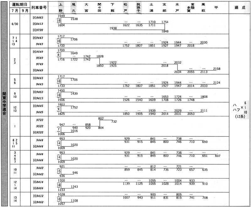 ■鉄道ダイヤ情報1986年夏号「夏の集約臨時列車 運転予定表」より(クリックで拡大)
