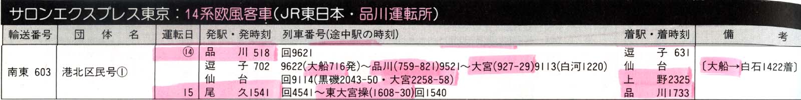 ■1987-6-14(日) 池袋 9521列車 (逗子→品川7:59-8:21→大宮9:27-29→仙台) EF651013 サロンエクスプレス東京 (品川運転所 14系 欧風客車)