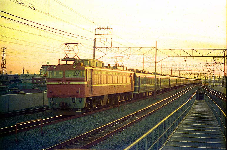 1987年11月17日(火)、学校帰りの亀有で撮影した EF8181 + 14系座席車x12連 です。