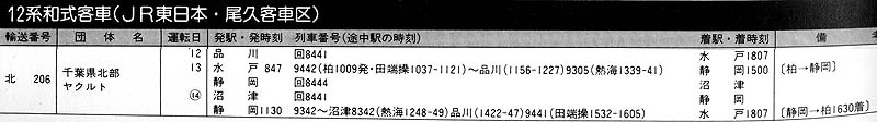 ■鉄道ダイヤ情報1988年2月号「ジョイフルトレイン運転予定表」より (クリックで拡大)