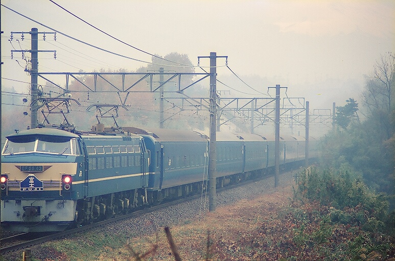 そうやって地道に撮影通いするうちに、一枚の絵が私の頭の中に描かれていきました。それは富士山をバックに走るオリエント急行。よく東海道の上りブルトレの写真で見る、アノ構図を何としても決めたい。当時の学校は週休1日制で日曜日と祝日しか休みではありませんでしたから、日曜・祝日にオリエント急行が東海道を上ってくる日はないか・・・鉄道ダイヤ情報に載っている運行予定を、マルヨマークに注意しながら丹念に追っていくと・・・12月4日だ!